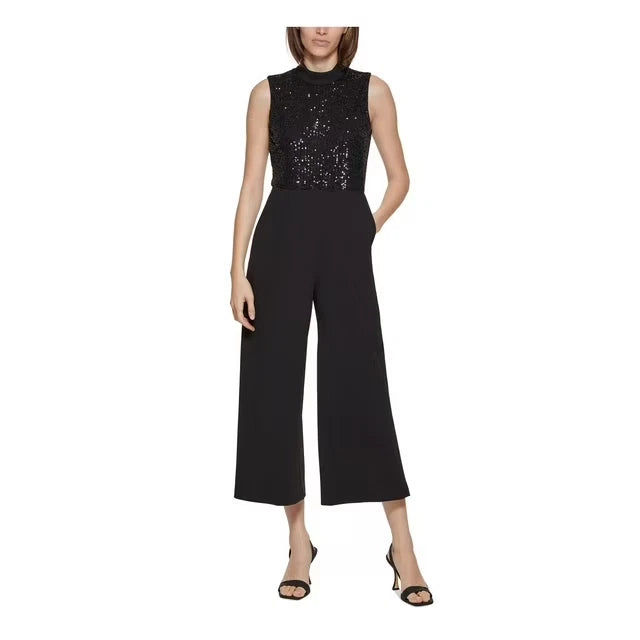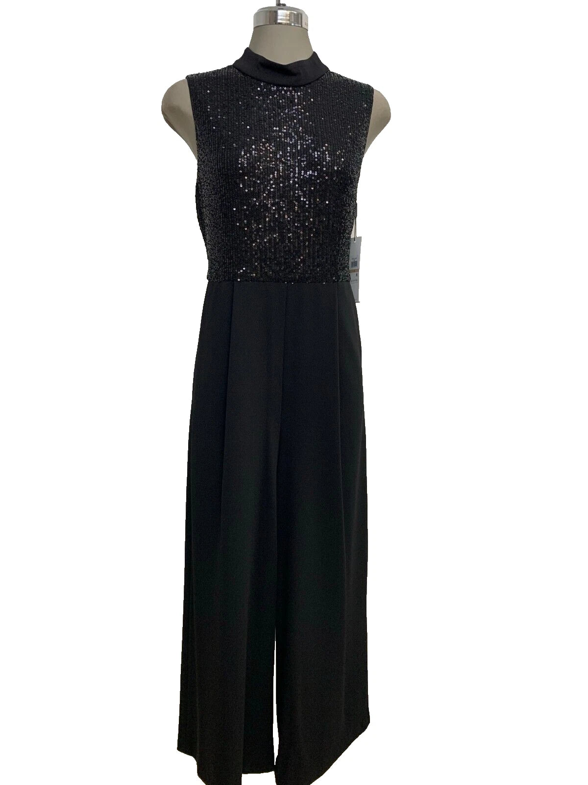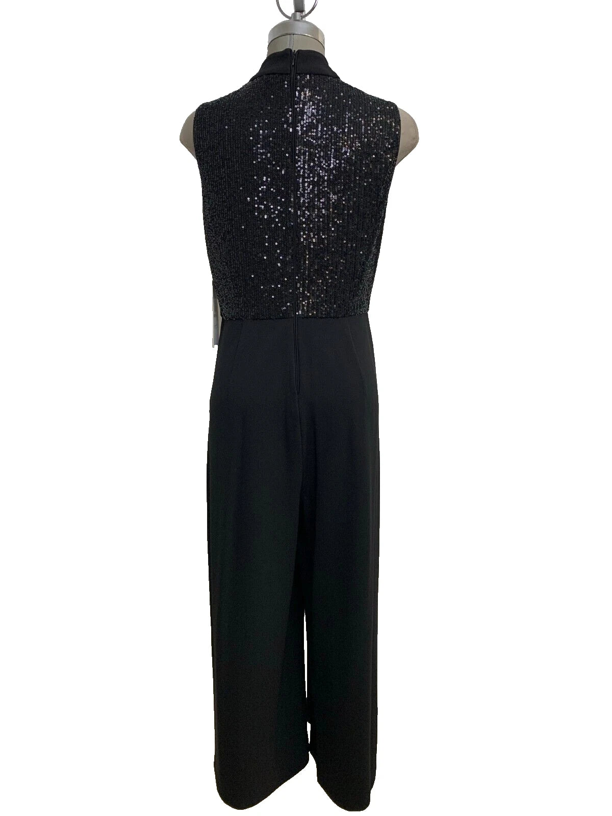 Calvin Klein's contemporary jumpsuit is the confortable, perfect gown alternative with its sparkly top and flowy wide-leg bottom.
