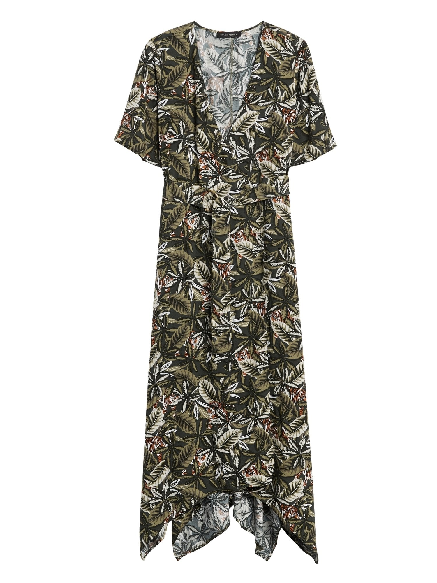 A ready-for-anything wrap dress with the season's hit hanky-hem detail and adjustable slider belt to add a utilitarian vibe.