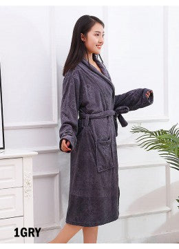 Flower embroidered microfiber house robe W/ pockets and strap. It is perfect to lounge around at home or by the poolside.
