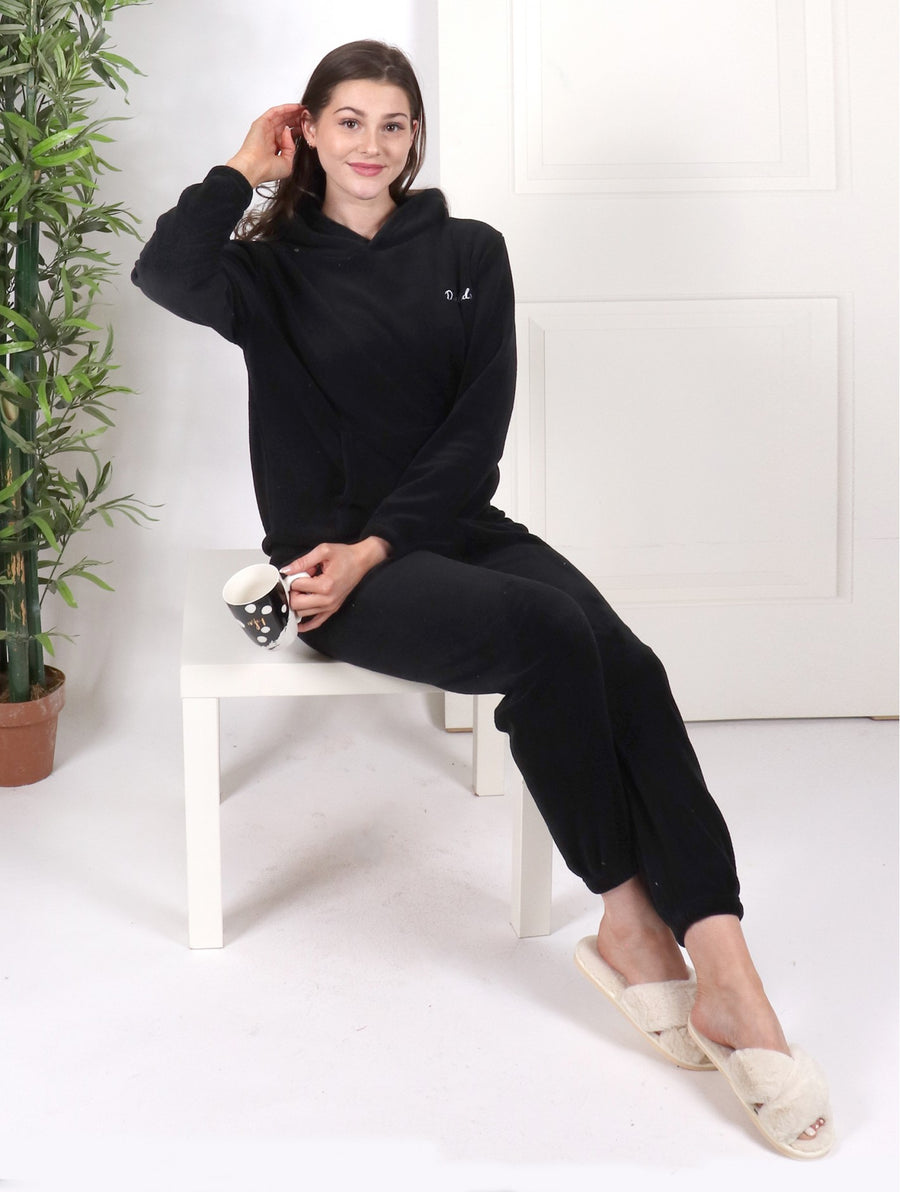 - Description: Soft Sweat Shirt W/ Hood and Sweatpants Set. Super comfortable for lounge, casual, running, workout, sport, outdoor, daily wear. Colour: Black .