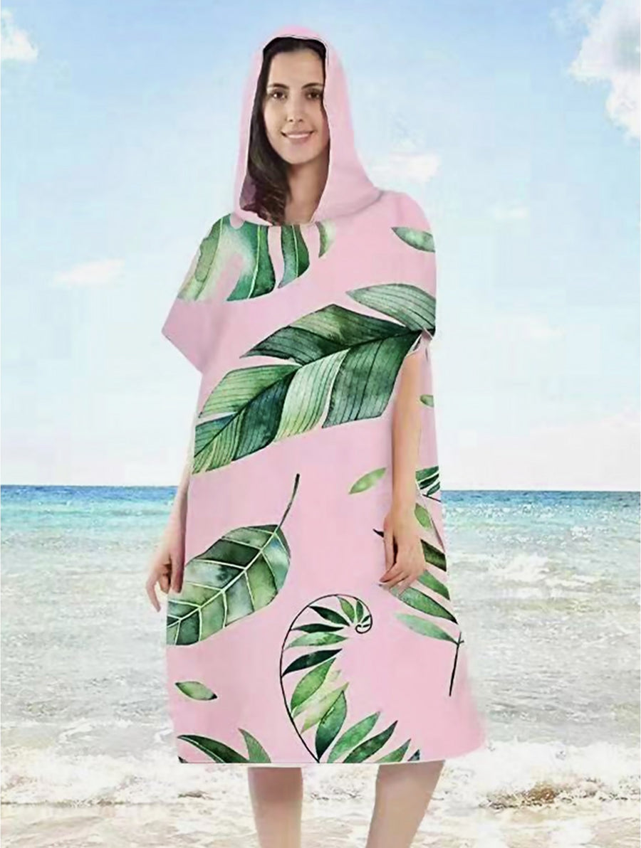 - Description: Tropical Leaves Print Hoodie Robe is this season's best seller. Cotton feel, made of quick dry material, super soft, and water absorbing. An essential item for travelling, vacation, beach, and home use. Great gift for this season.