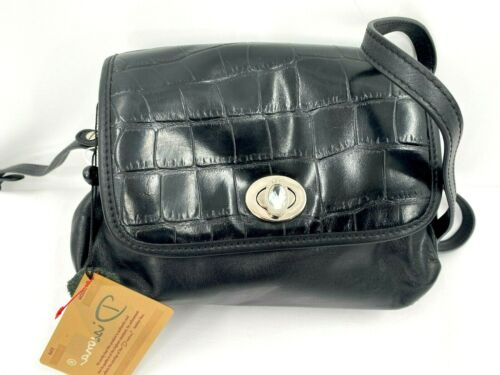 Dissona Croc Embossed Leather Crossbody Bag Shoulder Purse