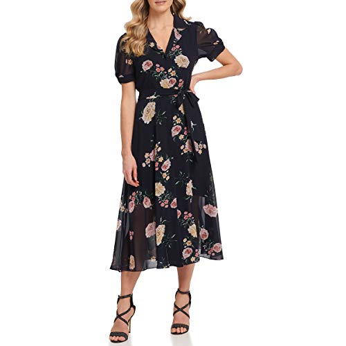 DKNY Women’s Knot Sleeve MIDI Shirt Dress – Navy Blue