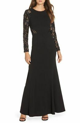 Eliza J Black Embellished Sequin Lace Long Sleeve Gown
