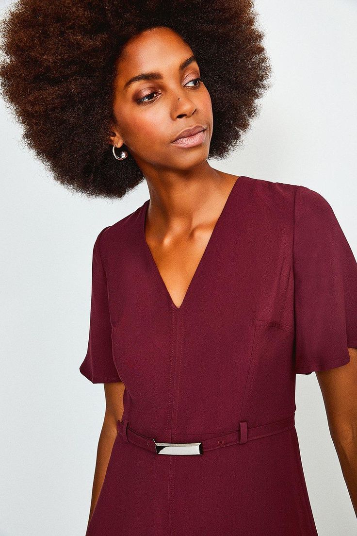 Karen Millen V Neck Flute Sleeve A Line Dress – Brick