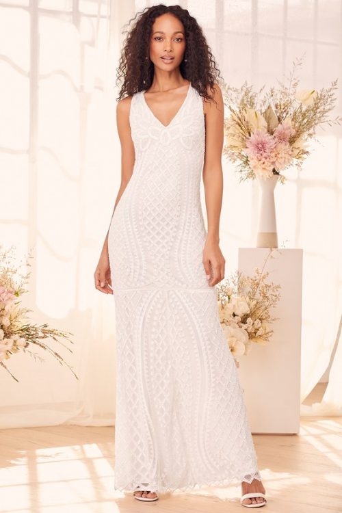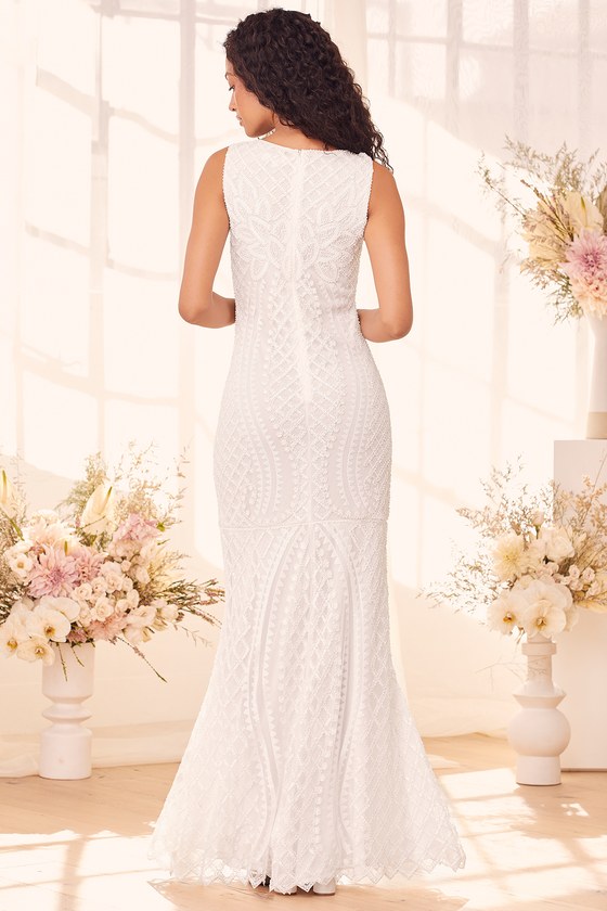 Lulus Alessandra White Beaded Sleeveless Mermaid Maxi Dress