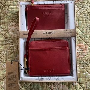 Margot Newyork 2pcs set Card Case Key ring & Wristlet Wallet Genuine Leather
