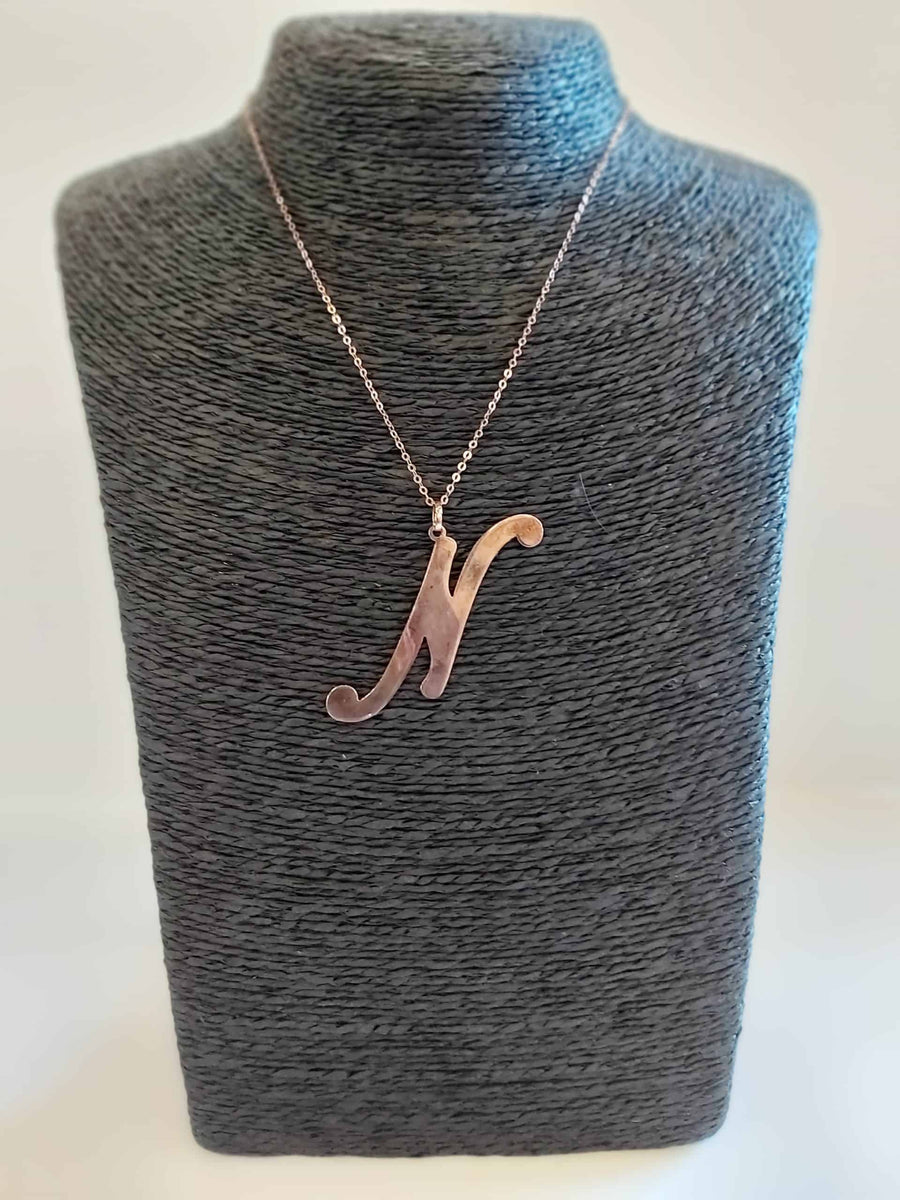 925 silver Initial Necklace Rose Gold plate, Letter N