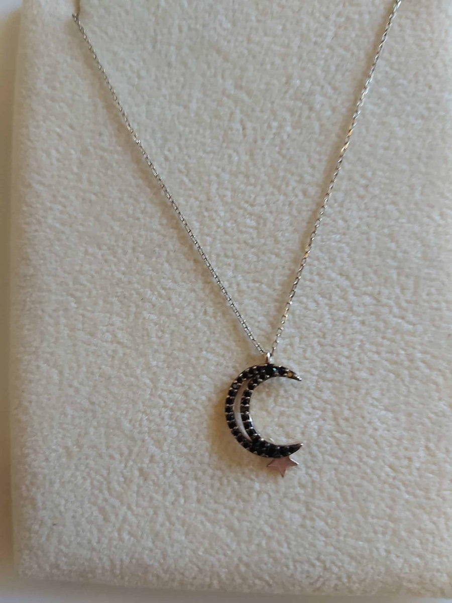 925 Silver Necklace Rose Gold Plated + Black CZ, Rose/black