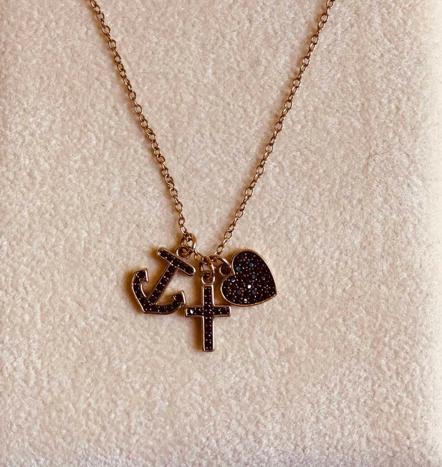 925 Silver Necklace Rose Gold Plated + Black CZ, Rose/black