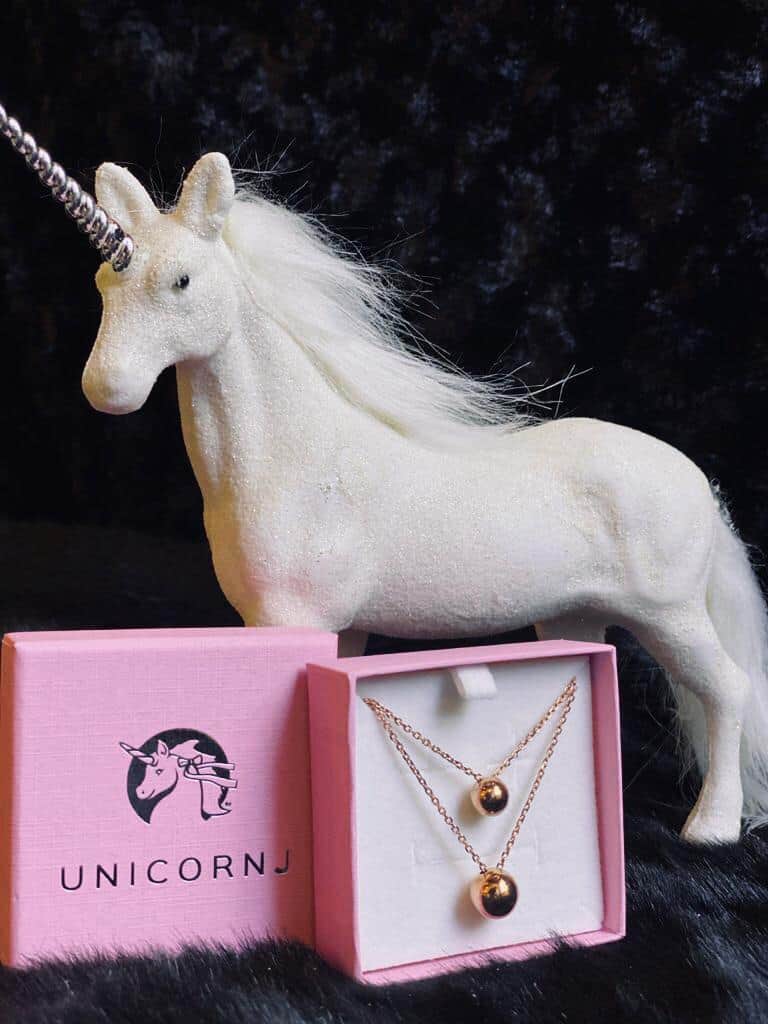Unicorn Sterling Silver Large Layered Double Chain Rose Gold Plated 28″