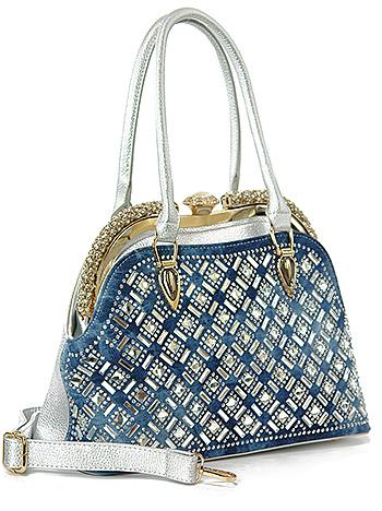 An ornate rhinestone design gives this hand tote a truly unique edge. The show-stopping silhouette also features a classic frame opening with a rhinestone finish.