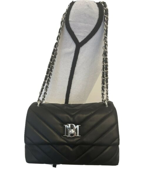 Chic mini faux leather crossbody bag with a quilted design. Turnlock closure, Silvertone hardware, One outside back zip pocket, Two inside open pockets and Metallic logo at front