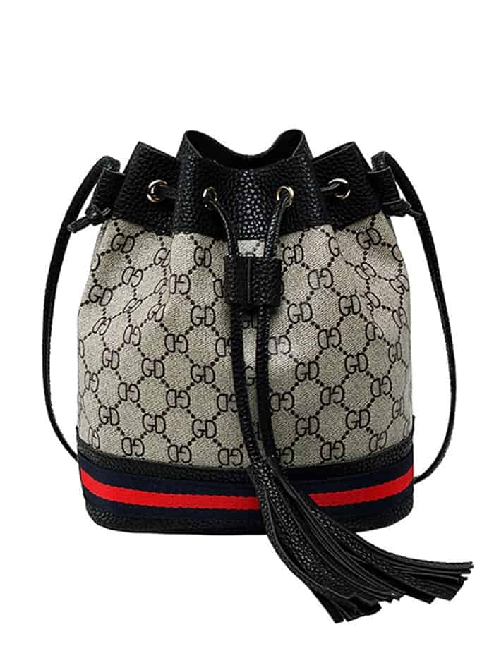 GD Black Shoulder Crossbody Bucket Bag – Black