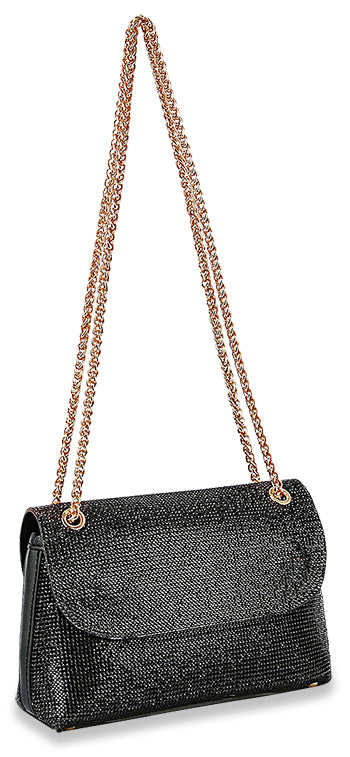 A chic evening bag is covered in sparkles with a dazzling sheen to catch the light and lots of compliments.