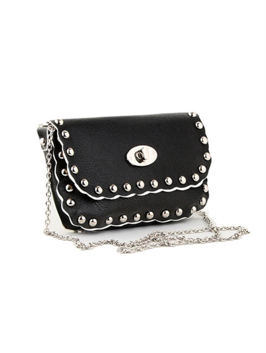 Mini studded purse with long chain shoulder strap. BG055-03-BLK