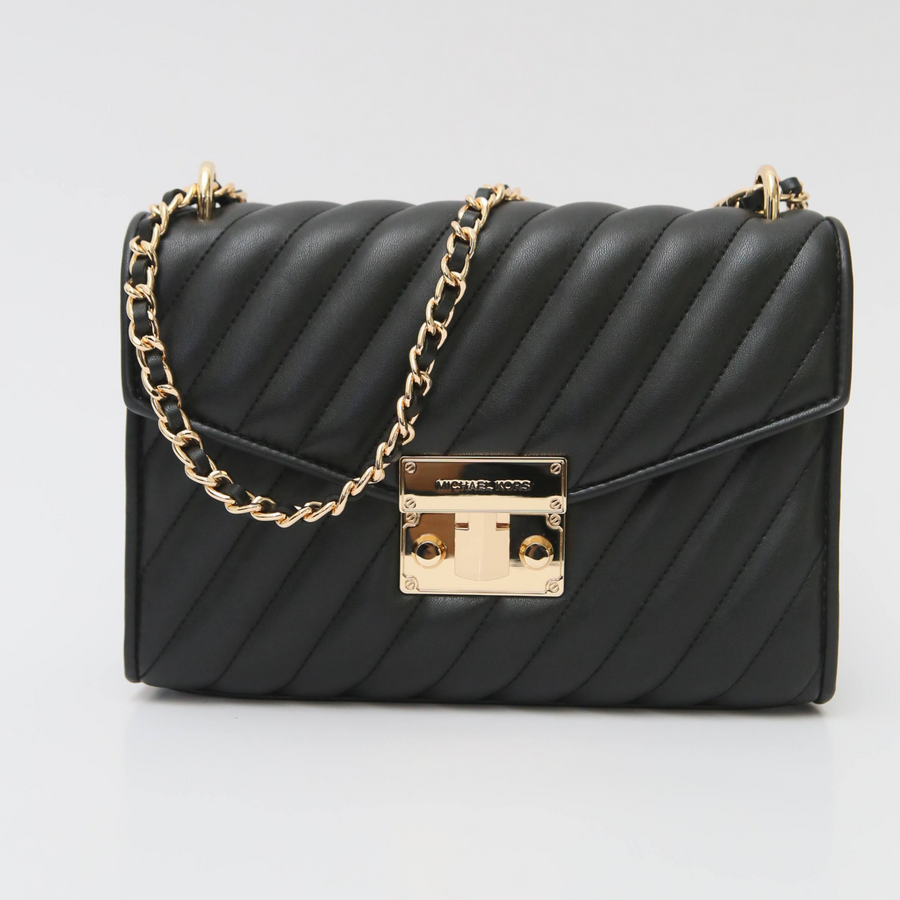 Michael Kors Medium Rose 35T0GX0L2U Flap Shoulder Bag In Black With Gold Chain