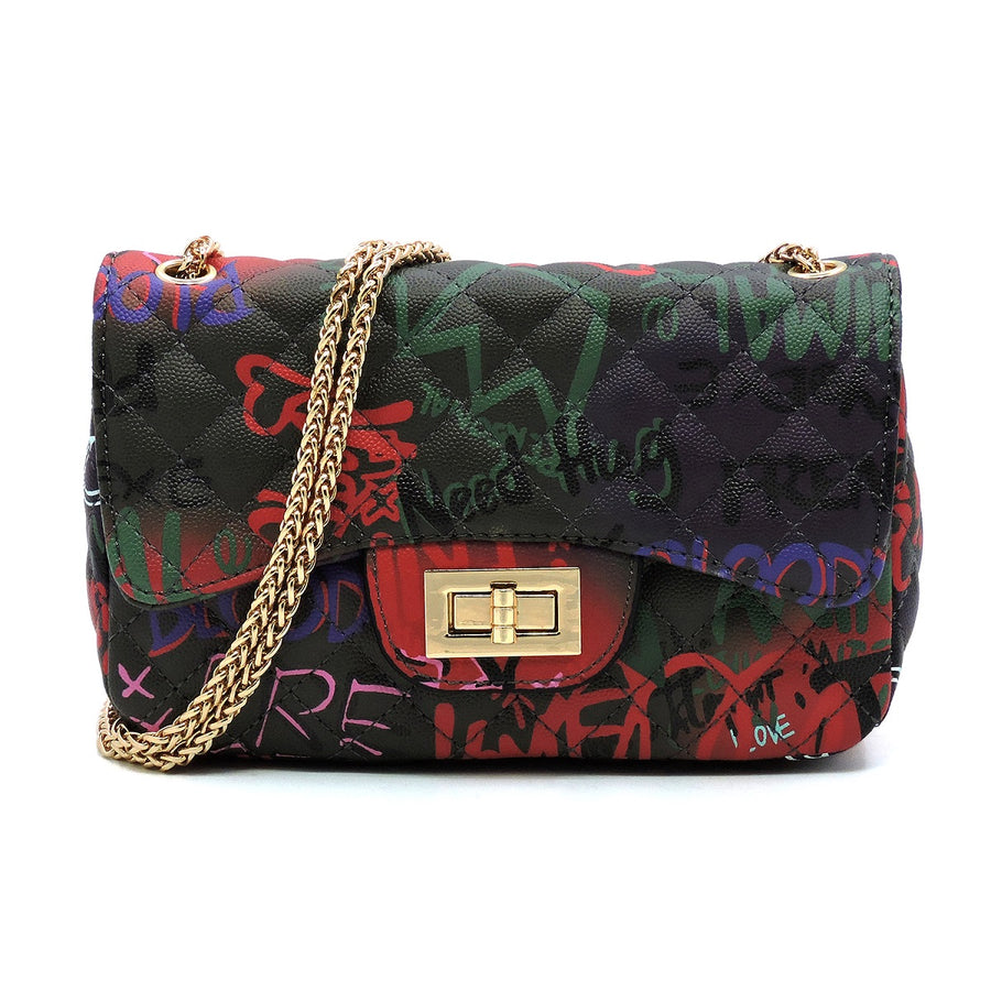 Multicolor Quilted Graffiti Print Crossbody Bag