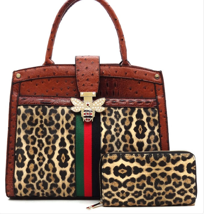 Ostrich Croc Leopard Queen Bee Stripe 2-in-1 Satchel