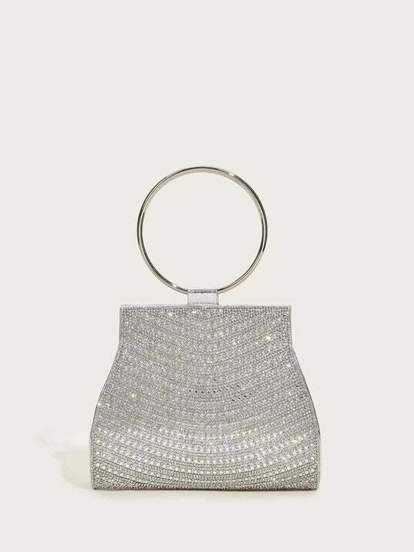 Ring Handle Rhinestone Clutch Bag