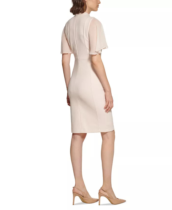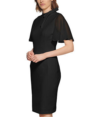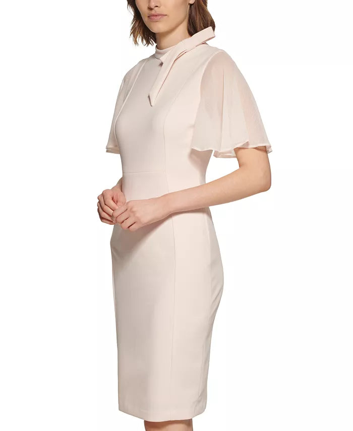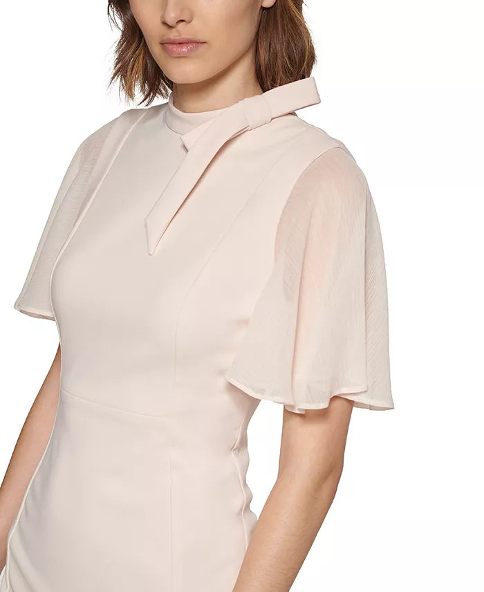 Tie-Neck Chiffon-Flutter-Sleeve Sheath Dress