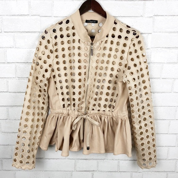 CQ by CQ brand Nude Peplum Jacket . Draw string at waist. Very stylish and fun.