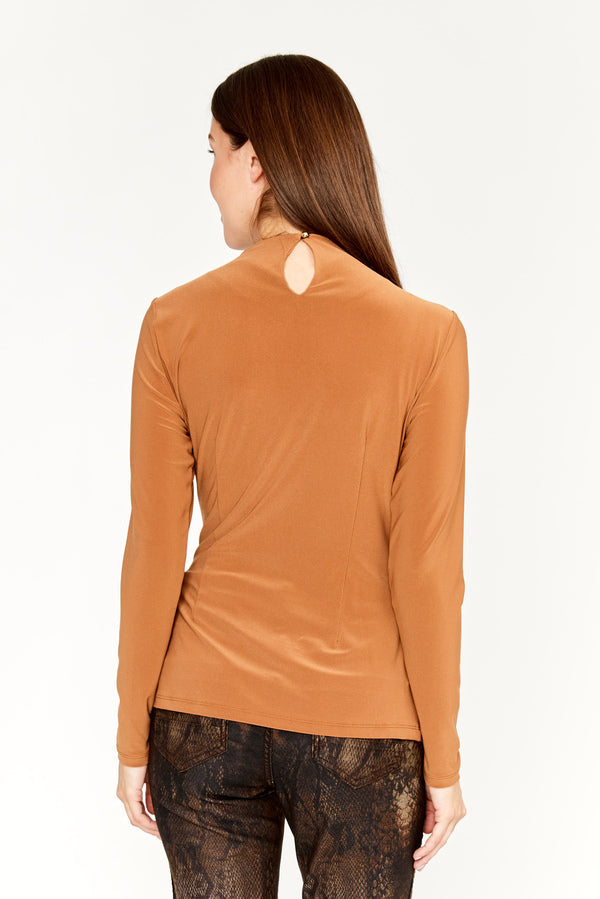 Created by the renowned Canadian designer Frank Lyman, this remarkable top is as praise-worthy as it is statement-making, thanks to its high neck and twisted, ruched front. Its ruching carefully hugs your figure to create your closet's most flattering fit. Great for off-duty looks to dressed-up occasions.
