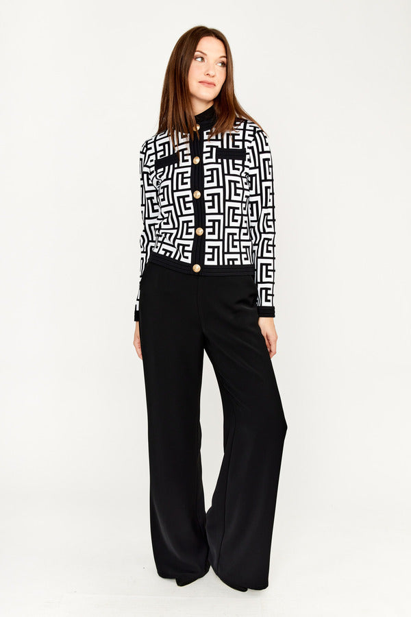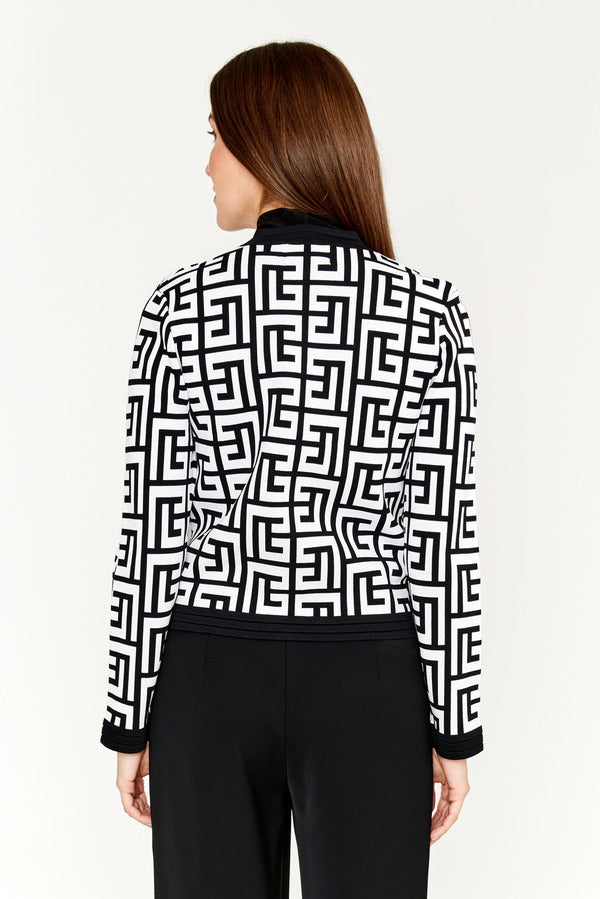 Designed with an ultra-flattering fit and boasting a geometric motif that evokes a mosaïc from a bygone era, this Frank Lyman jacket is a must for your fall/winter collection. It's composed of just two colours, and the bright, gold button closure adds a touch of shine to the look. A contrast trim along the collar, cuffs, and front slit pockets are polished details, rounding out the look with flair.