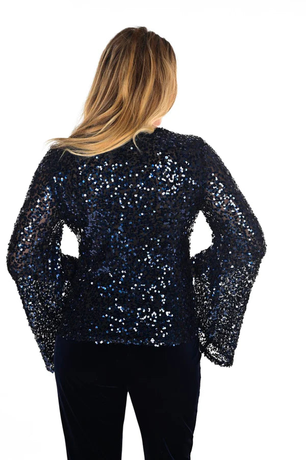 Introducing the Frank Lyman 234126U-NAV in the elegant Navy color, a fashion piece that exudes sophistication and shines brilliantly with its all-over sequin detailing. Designed and crafted in Canada, this sweater top embodies the creativity and quality synonymous with Frank Lyman's Canadian fashion.