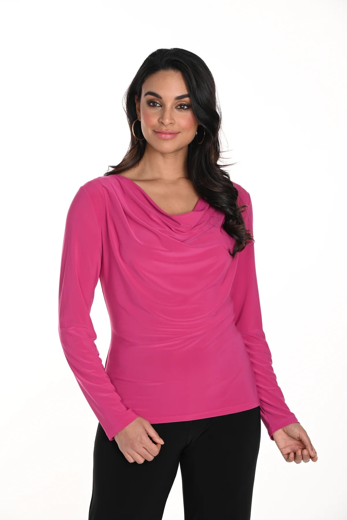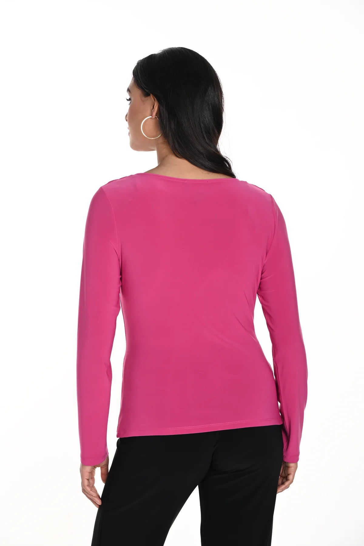 This Frank Lyman knit top exudes sophistication and style, featuring a rich magenta color that is perfect for fall. Crafted with high-quality materials, this top offers both comfort and a flattering silhouette. Elevate your wardrobe with this must-have piece for the upcoming season