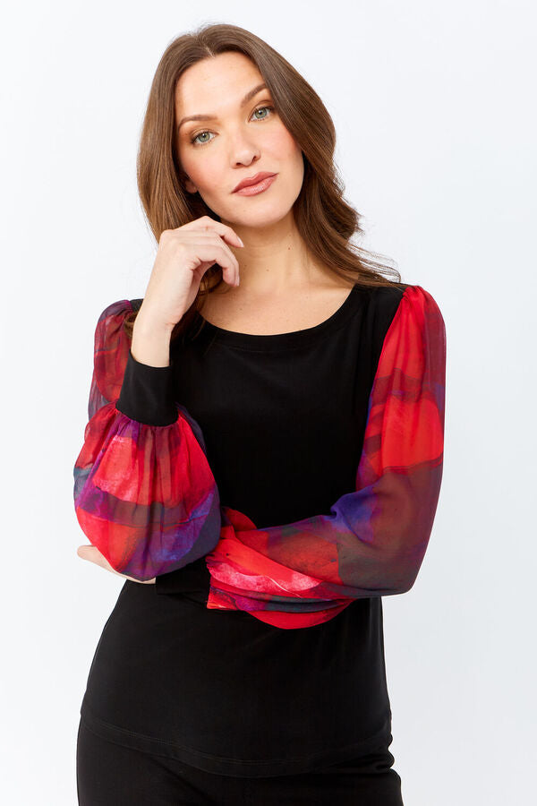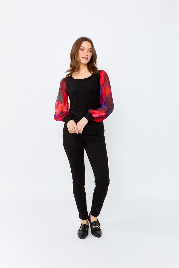 Add a pop of color to your wardrobe with our Black Top featuring vibrant colored sleeves. This stylish piece combines classic black with a playful twist, making it perfect for any casual or chic outfit. The comfortable fit and eye-catching design ensure you stand out effortlessly. Pair it with your favorite jeans or skirt for a trendy, standout look.