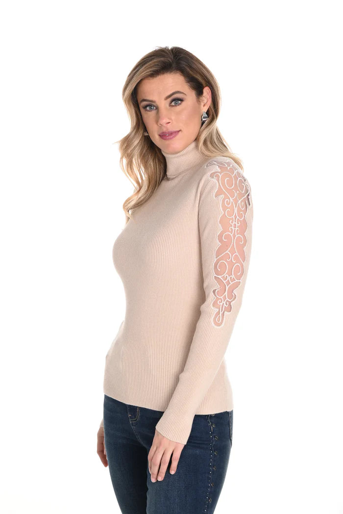 Magnificent stretchy and comfortable sweater, soft turtleneck, sleeves with detail and transparency.