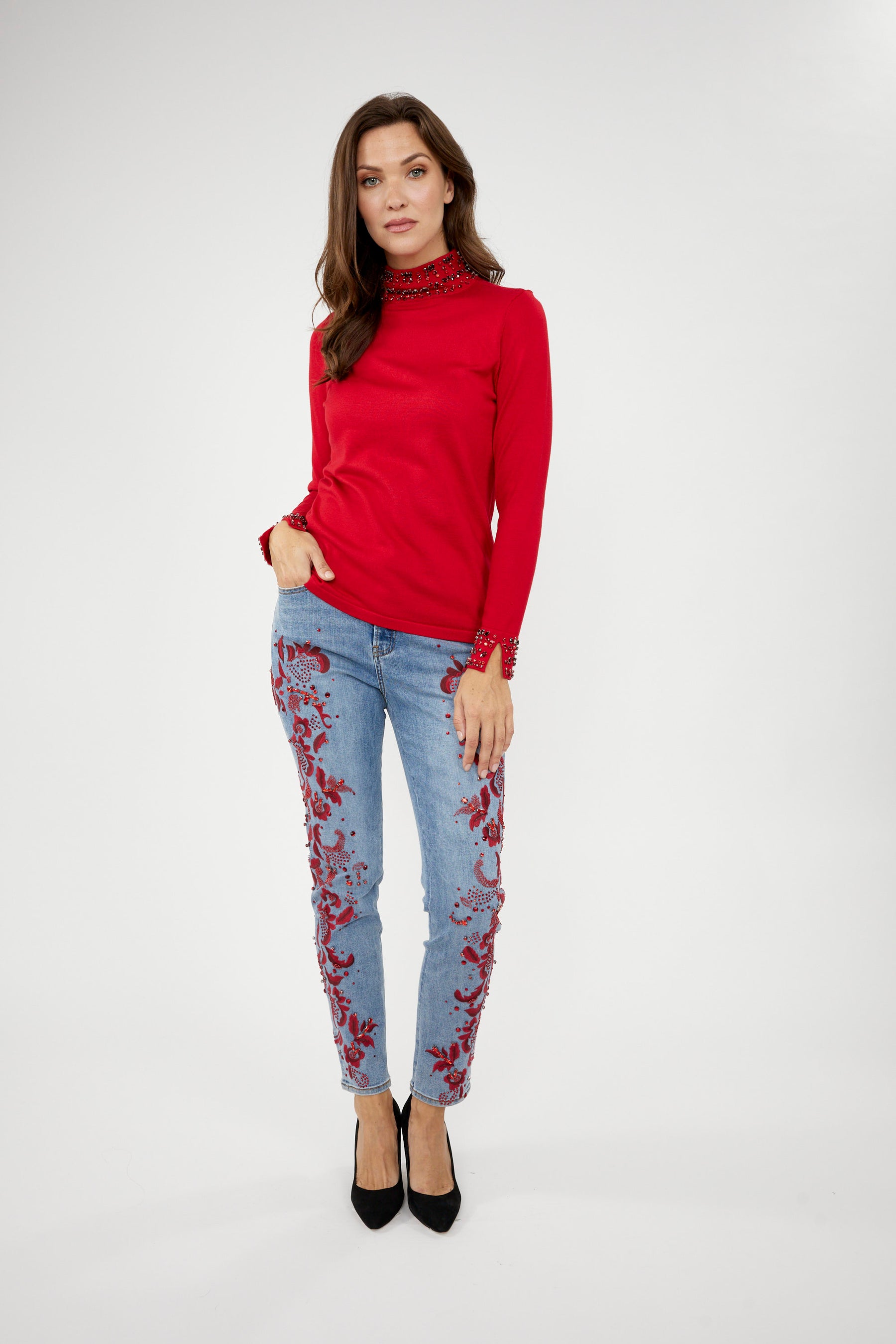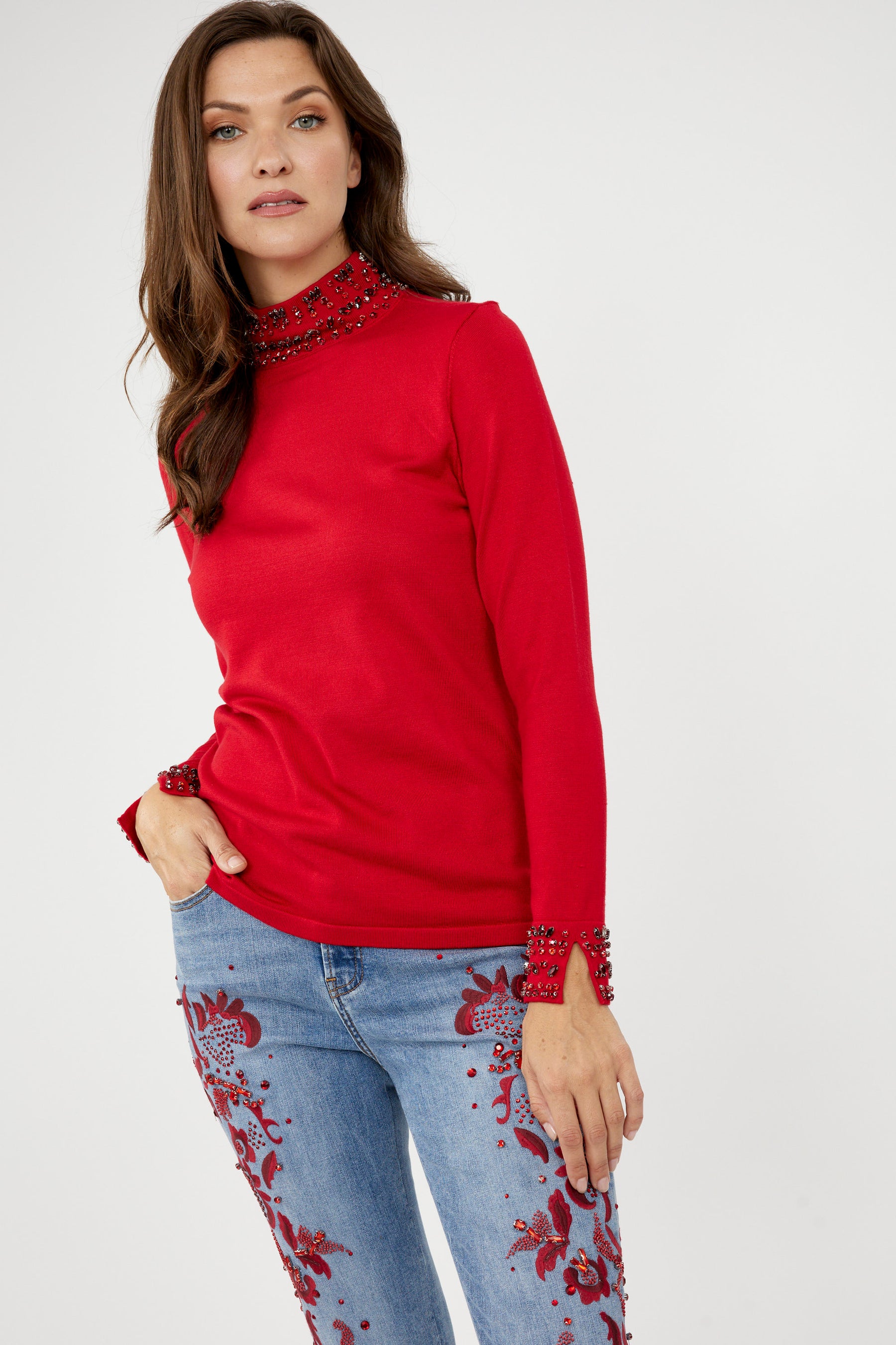 Discover the chic and glamorous appeal of the Frank Lyman pullover. This regular fit, hip-length top features a sophisticated mock neck and long, straight sleeves, making it perfect for both casual and semi-formal occasions. Adorned with jewels, embellished details, and beading, this plain-patterned piece effortlessly combines elegance with comfort, ensuring you stand out in any setting.