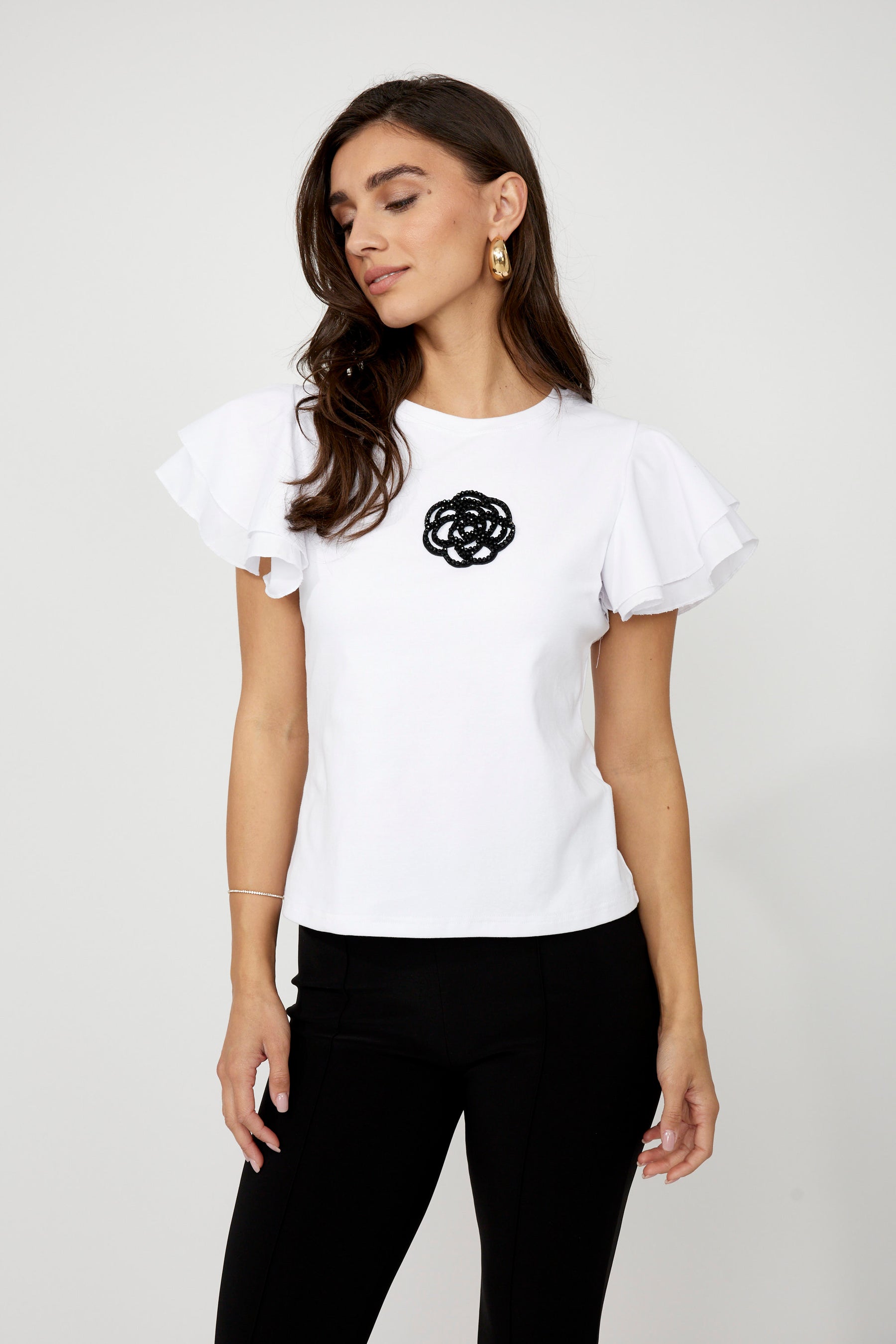Discover the perfect blend of comfort and style with this Frank Lyman pullover. Featuring a crew neck and regular fit, this hip-length top boasts ruffled and embroidered details that add a touch of elegance. Ideal for casual, office, or dating occasions, its plain pattern and puff short sleeves create a feminine, yet versatile look.