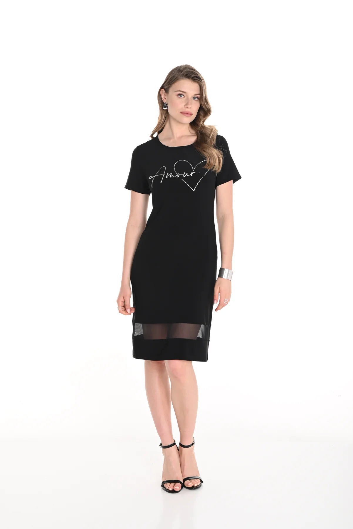Uncover the ideal combination of fashion and comfort in this knee-length shift dress by Frank Lyman. Decorated with sparkling jewels and featuring a round-neck design, this dress is perfect for relaxed summer events. Its plain pattern and short sleeves add a touch of femininity, making it a versatile choice for any wardrobe.
