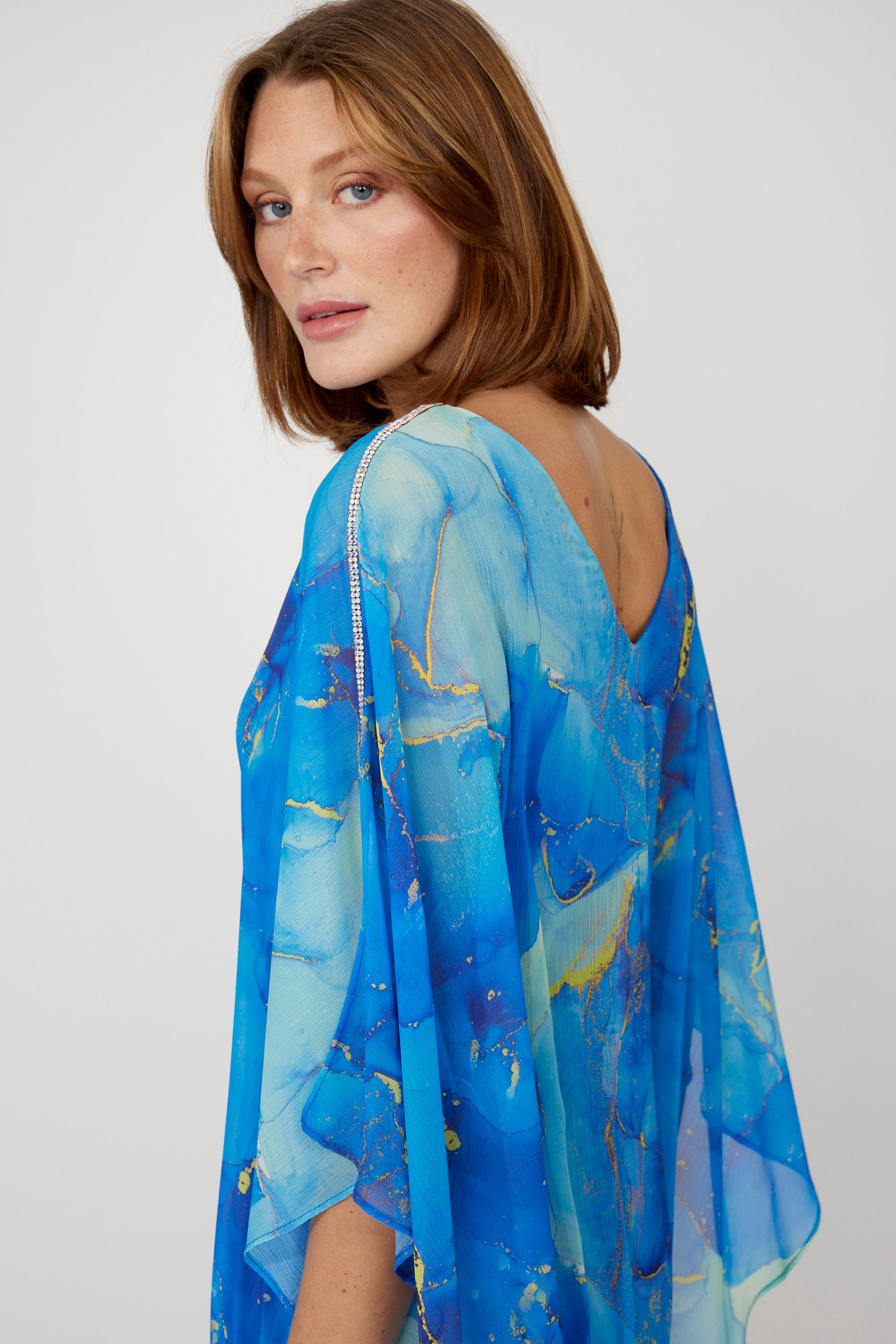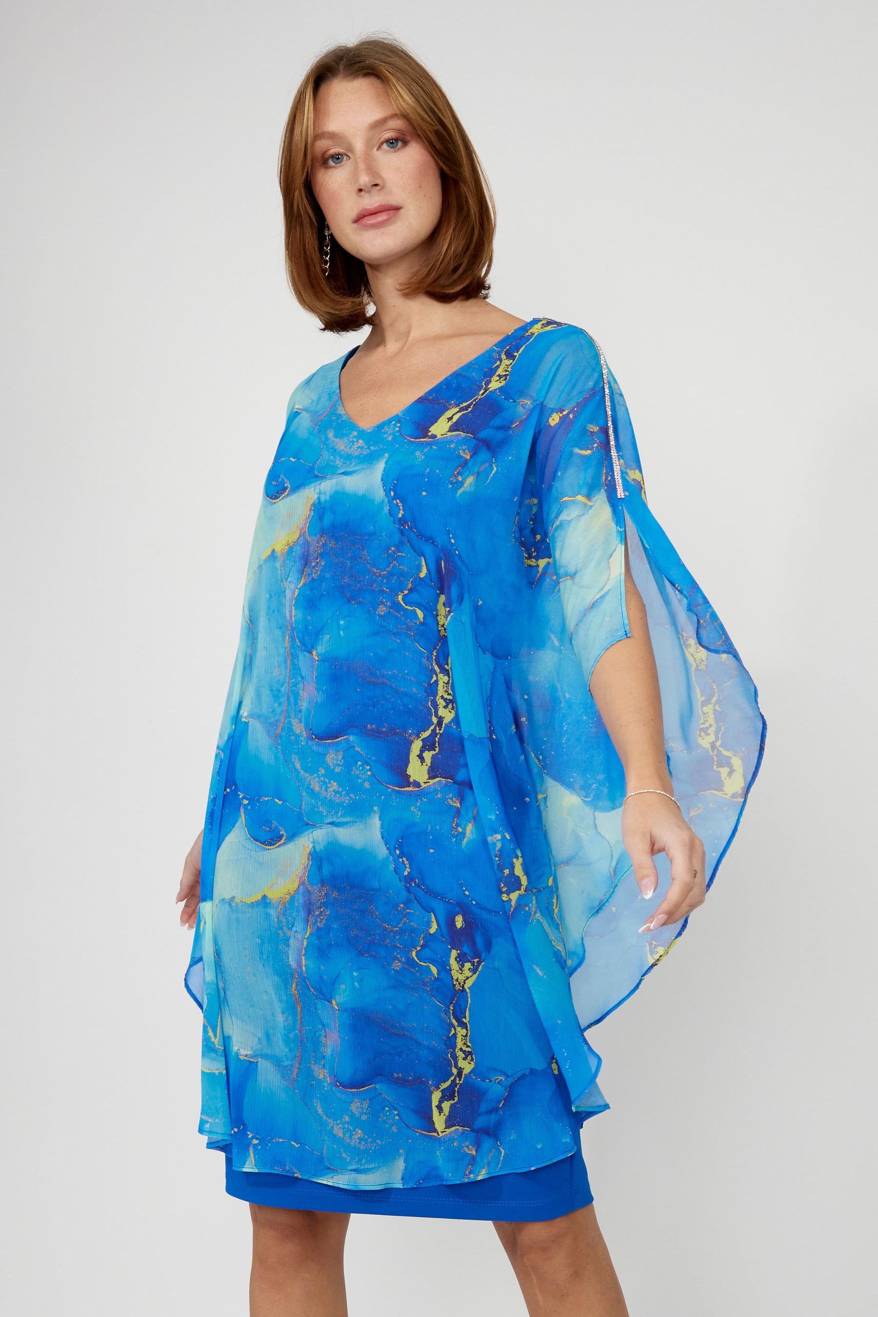 Discover the perfect blend of comfort and style with this Frank Lyman shift dress. Featuring a flattering V-neckline and charming flutter sleeves, this dress is adorned with jewel embellishments for a touch of sparkle. The abstract pattern and feminine design make it an ideal choice for casual summer occasions. Embrace effortless elegance with this standout piece in your wardrobe.