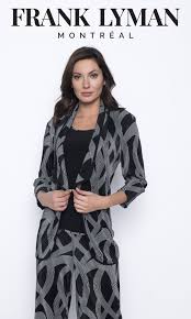 silky knit drape style jacket in black & white By Frank Lyman Designs