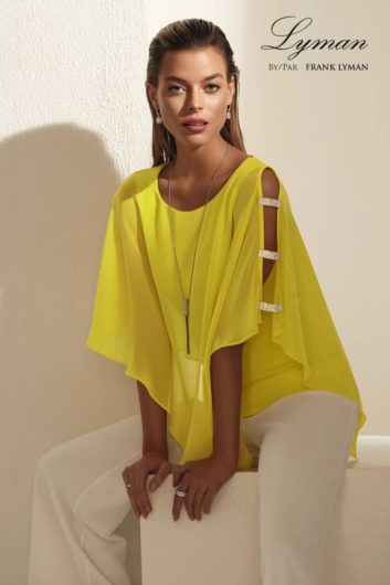 Stylish "Citrine" all season knit pullover with attached overlay and diamonte cutout sleeve detail. Very Flattering with detachable jewelry.  Easy care, hand wash cold water, overlay 100% polyester-underpinning-95% polyester-5% elasthane. unlined and approx.