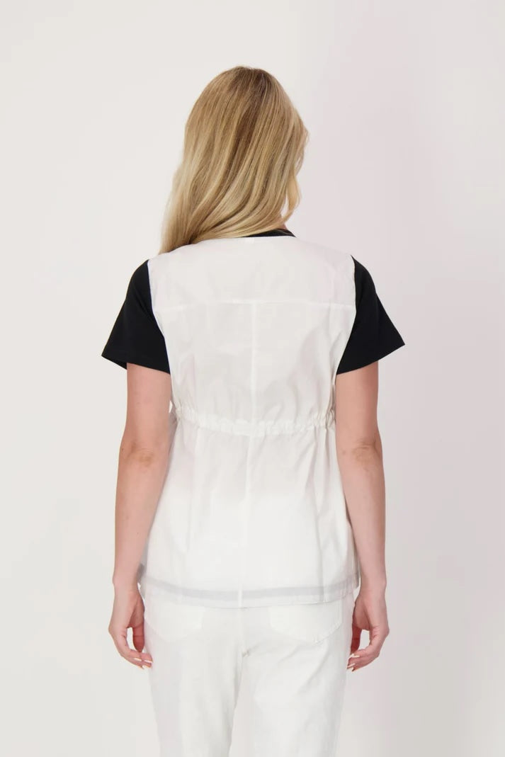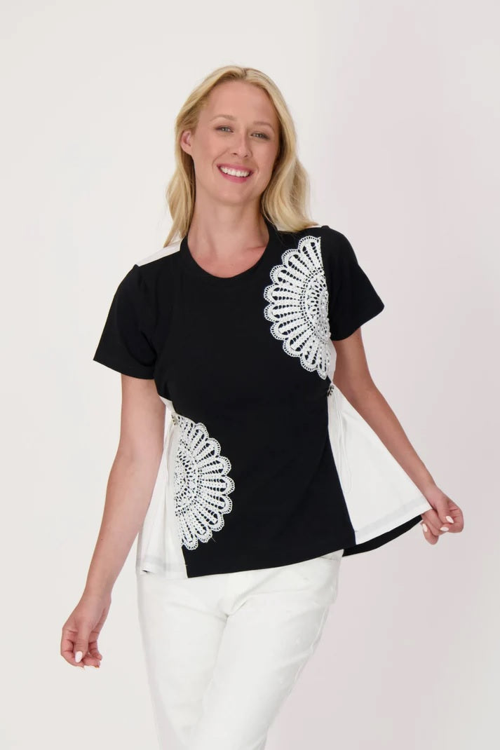 This unique t-shirt features a cinched detail at the back, creating a flattering silhouette. Versatile and easy to style for both day and night, this is a must-have!