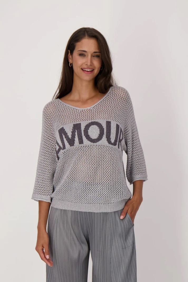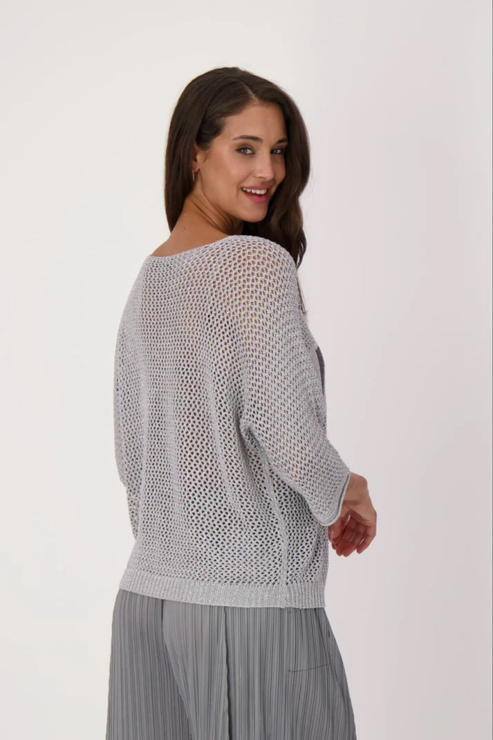 This chic top is crafted from a shimmering lurex knit. The luxe mesh adds a touch of breathability, making this top both stylish and comfortable. Style with Silver Plisse Pant for the ultimate chic look.
