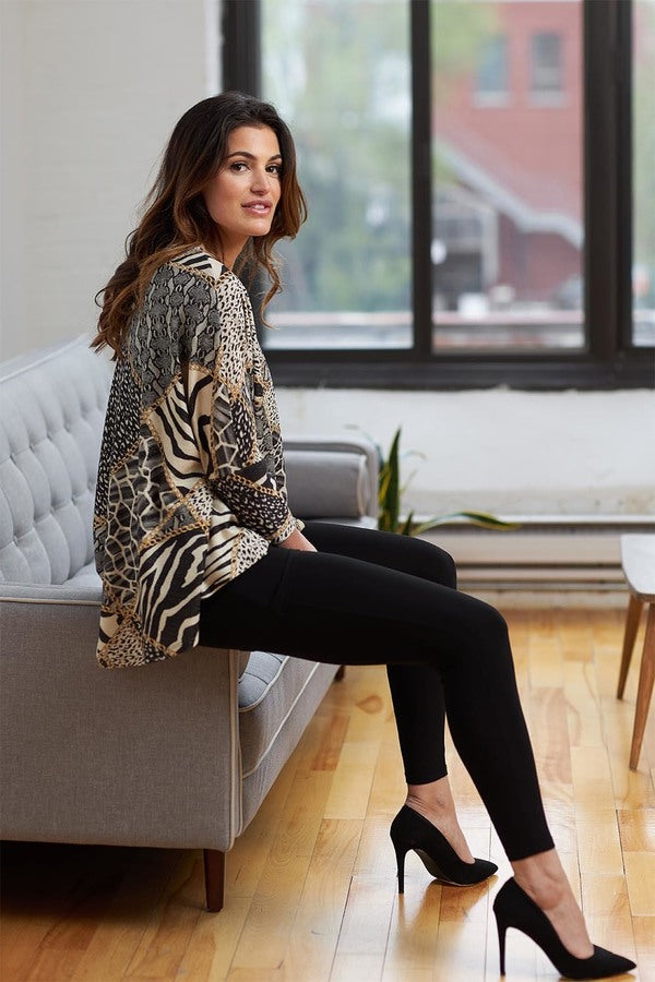 Joseph Ribkoff’s leggings are both comfortable and versatile with a slim yet breathable fit that comes with an elasticized waist and unlined construction for comfort and the full functionality of a zipperless, slip-on style.