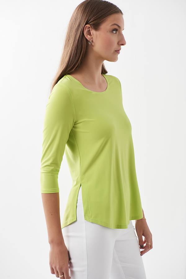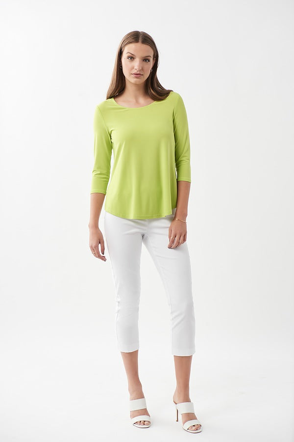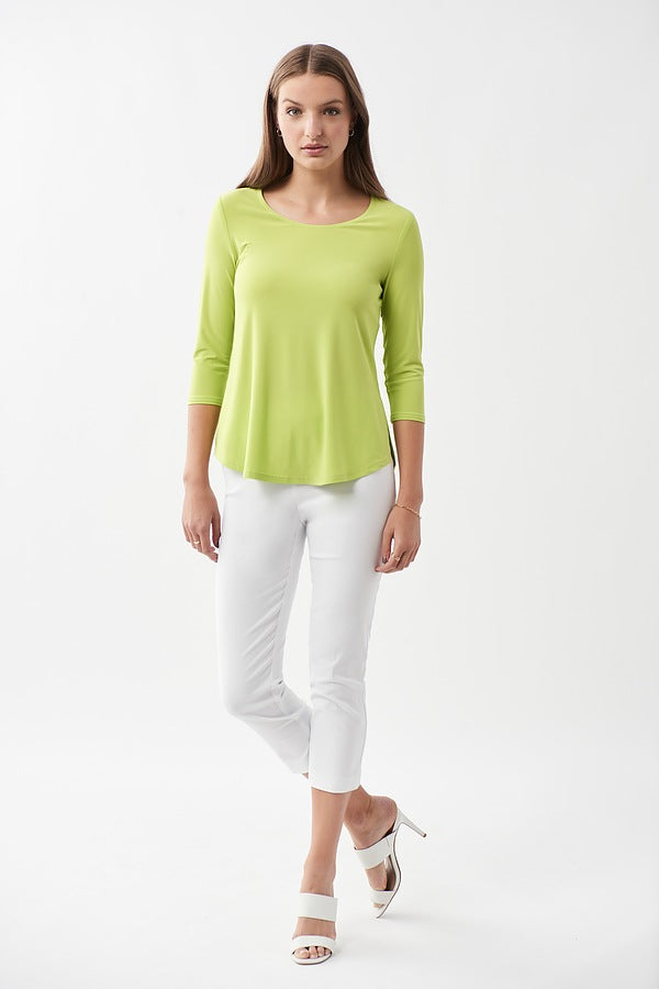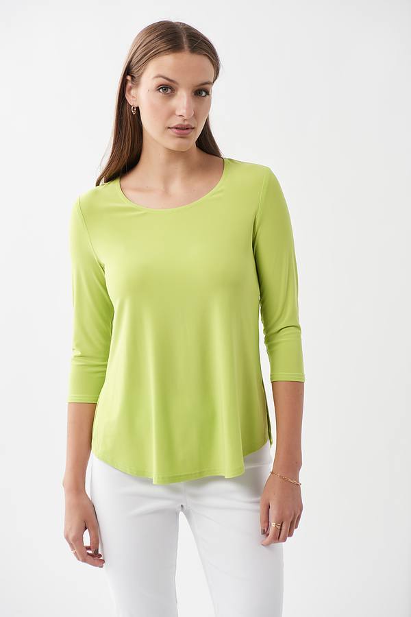 Featuring three-quarter length sleeves, rounded neckline and rounded hem that hits just past the hip, this Joseph Ribkoff top has a comfortable, slightly tailored fit, which is great for wearing with casual and formal coordinates.