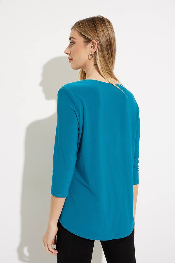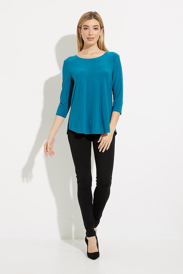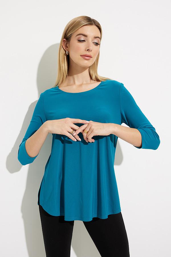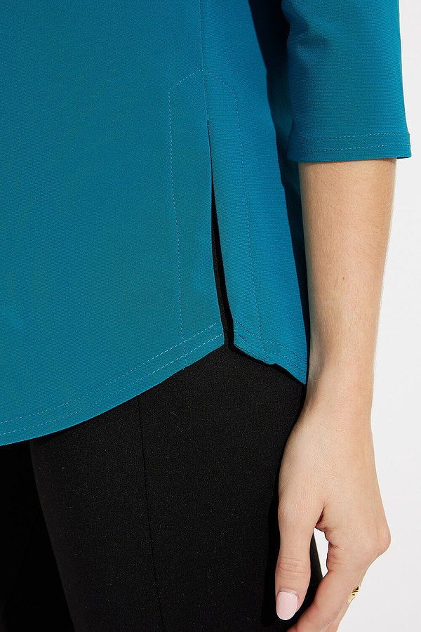Featuring three-quarter length sleeves, rounded neckline and rounded hem that hits just past the hip, this Joseph Ribkoff top has a comfortable, slightly tailored fit, which is great for wearing with casual and formal coordinates.