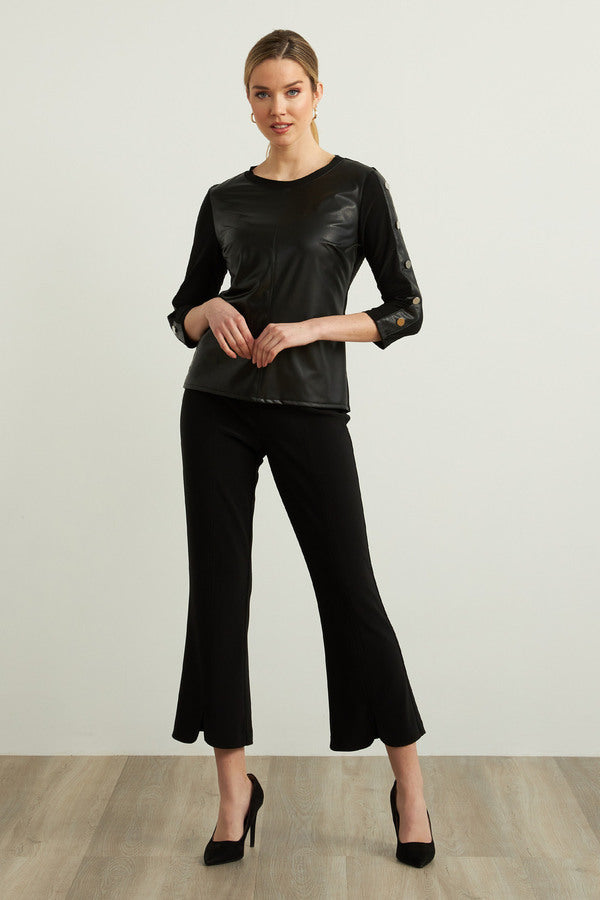 With its edgy faux leather texture, this Joseph Ribkoff crew neck instantly elevates your work week wardrobe!