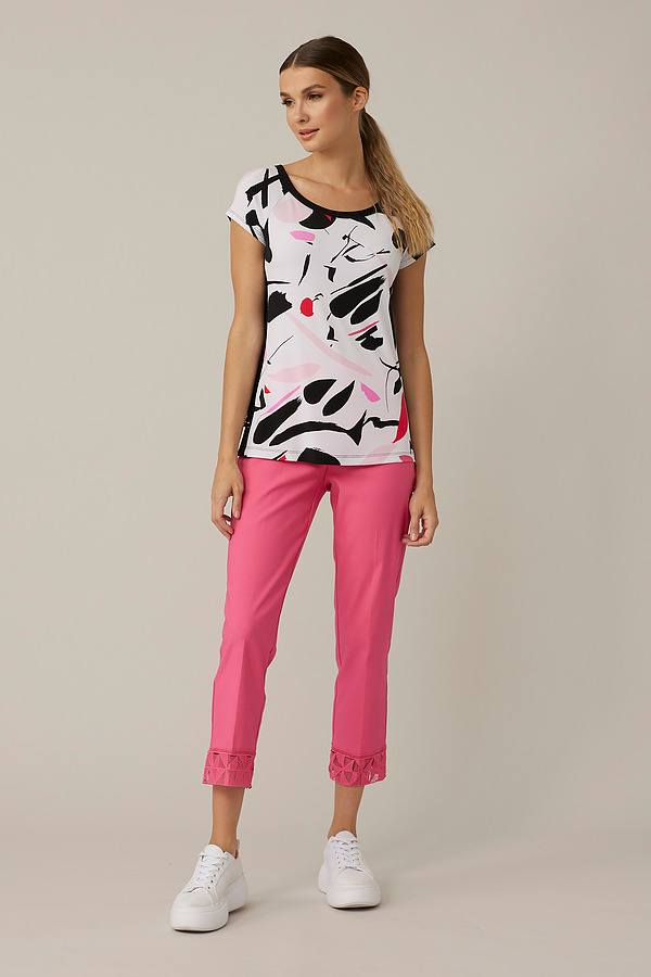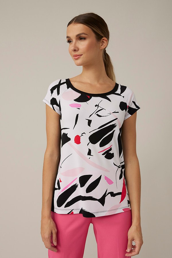 Craving some colour? Turn to this Joseph Ribkoff top. A relaxed fit, short sleeves, and curved neckline make it a simple choice for everyday wear. But its brushstroke-inspired abstract print is what really helps this style stand out. Wear it under layers or pair with jeans to complete the look.