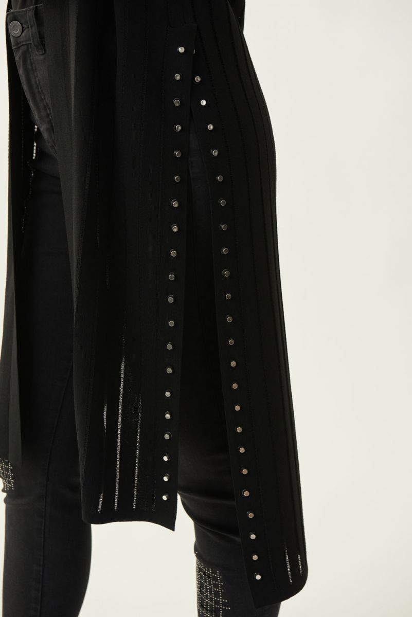 Choose an expressive look with this lightweight textured cover-up that has long side slits and bell sleeves to create movement and flow as you walk. The stud detailing along the slits gives it an edgy yet classy look for work or leisure.
