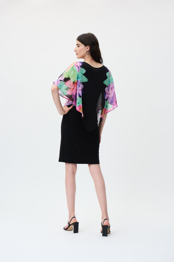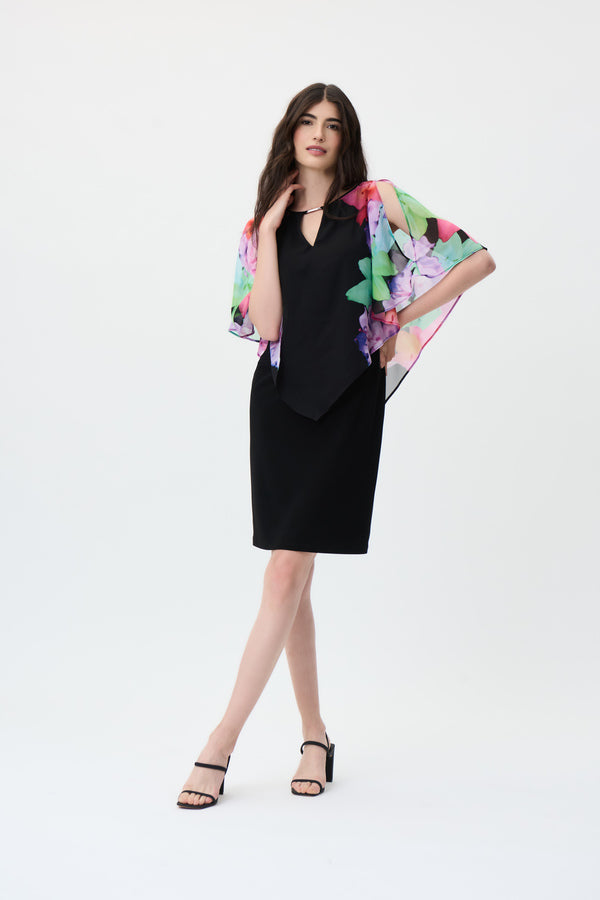 For a look that moves with you, try this Joseph Ribkoff dress. It features bright, floral detailing on its sheer chiffon sleeves, an irresistible and elegant touch. You'll love everything about it, including its flattering, stretchy fit and keyhole neck with hardware accent.