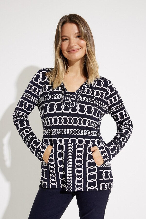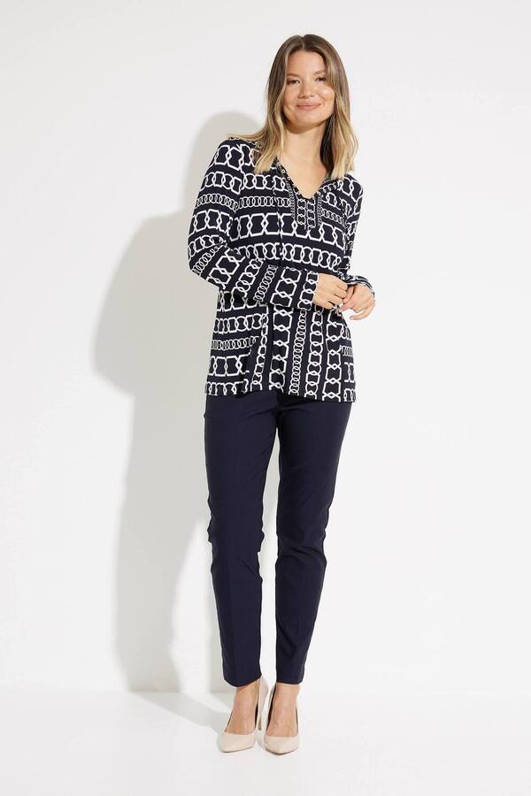 You'll look and feel smart wearing this fitted Joseph Ribkoff top, all decked out with an intricate chain print and V-neck.
