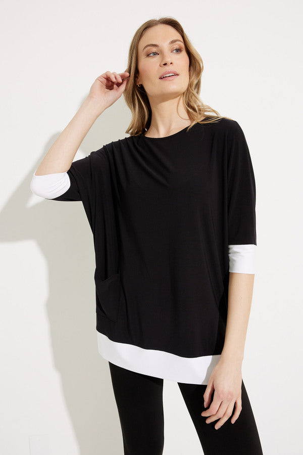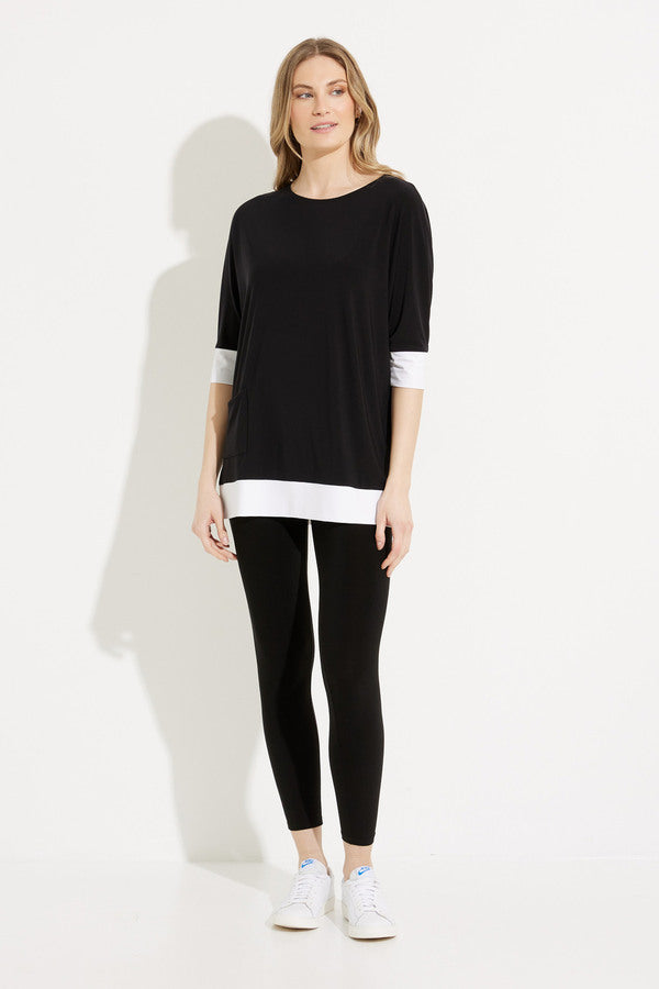 With its longer-than-average length and banded hem and sleeves, this Joseph Ribkoff tunic is a stylish choice that easily switches from dressed-down to dolled up with just a few accessories.