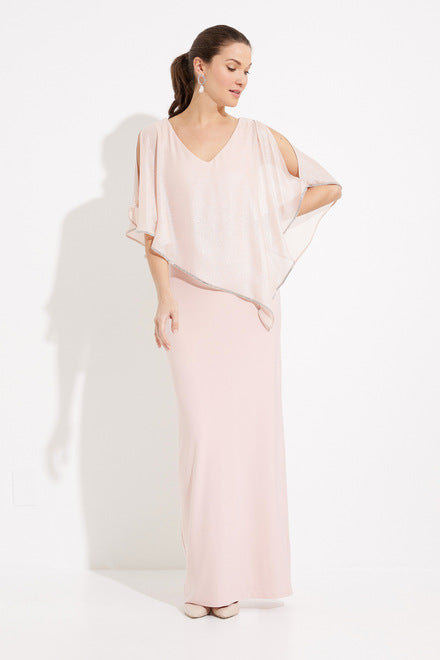 Bedazzled with shimmery embellishments, this elegant Joseph Ribkoff dress is is made for special occasions and nights on the town! Its sleeveless chiffon overlay drapes elegantly over the dress, while the fitted under lay hugs your form. It's a truly refined and head-turning look.